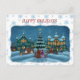 une carte postale romantique de noël heureux avec un squaire de la vieille ville pour une nuit d'hiver. clause santa, un arbre de noël et beaucoup de neige. exclusive par frank glerum art.