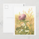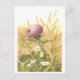 Cette carte postale présente une illustration botanique vintage d'un chardon dans un champ/pré, avec une abeille assise dessus.