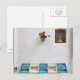 Carte postale d'un sanctuaire ou autel de rue avec une petite statue de la vierge Marie, fleurs et un banc bleu et blanc dans la ville blanche Ostuni dans les Pouilles, Italie.