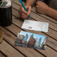 Cette carte postale présente un portrait en aquarelle de l'édifice Gooderham à Toronto, Canada.