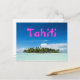 Carte postale avec une île déserte ou inhabitée avec des cocotiers près de Tahiti en Polynésie française dans l'océan Pacifique.