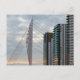 Détails de la passerelle de Media City à Salford, Manchester avec les bâtiments modernes des médias brillant au coucher du soleil.