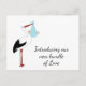Carte postale de marchandise de cigogne pour annonce de garçon
