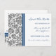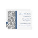Cartes postales de mariage pour annoncer la date de votre mariage dans un élégant et contemporain gris charbon foncé, bleu marine foncé, et motif floral classique et vintage damassé blanc, stylé et entièrement personnalisable avec vos détails de mariage. Également disponible sur de nombreux autres produits pour votre cortège de mariage.