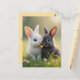 Carte Postale De mignons lapins blancs et noirs dans une prairie