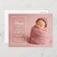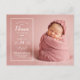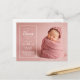 Cartes postales de naissance de bébé fille personnalisées et abordables. Ce design tendance présente une typographie moderne personnalisée avec le nom du bébé et les statistiques de naissance et une photo plein cadre. Ajoutez un message personnalisé ou des photos supplémentaires au verso si nécessaire. Utilisez les outils de conception pour personnaliser les polices et les couleurs du texte pour créer une carte postale d'annonce de naissance unique pour votre nouveau-né.