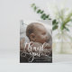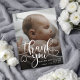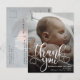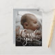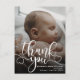 Carte postale moderne d'annonce de naissance de bébé avec photo. Conception avec un script de remerciement, une photo unique du bébé, des statistiques de naissance, une date et un nom au recto. Personnalisez avec une autre photo et votre message de remerciement au verso.