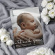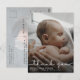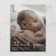 Carte postale moderne d'annonce de naissance de bébé avec photo. Conception avec un script de remerciement, une photo unique du bébé, des statistiques de naissance, une date et un nom sur le devant. Personnalisez avec une autre photo et votre message de remerciement au dos.