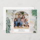 Carte photo de vacances peint à la main avec un accueil personnalisé le long d'une illustration de la forêt hivernale.
