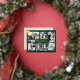 Cartes postales de Noël en feuille d'or avec six modèles photo. Les cadres et le texte sont en feuille, tout comme le flocon de neige dans le coin supérieur. L'or est montré, avec deux autres couleurs à choisir. Ajoutez des photos de la famille et des animaux de compagnie en orientation horizontale, verticale et carré. Votre photo remplira chaque modèle. Les images entourent le texte central. Ajoutez un message de bienvenue et une signature préférés. La couleur arrière - plan vert foncé de la forêt fonctionne avec des images couleur ou noir et blanc. Le dos de la carte contient des lignes pour les adresses d'écriture sur un arrière - plan de flocon de neige.