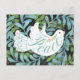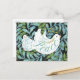 Une carte postale illustrée de Noël présente l'illustration gouache d'une colombe et des lettres manuscrites.