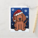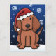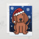 Envoyez des cartes postales de Noël Redbone Coonhound à tous vos amis amateurs d'animaux cette année! Un mignon dessin animé kawaii se trouve sur la neige fraîchement tombée, portant un casquette Père Noël, tandis que des flocons de neige dérivent doucement tout autour de lui.