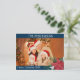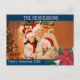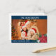 Photos de famille Poinsettia Carte postale de Noël avec année et élégant clip bleu marine et blanc floral.
