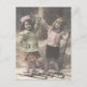 Carte postale de Noël Vintage-enfants en skis