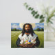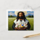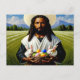 Cette carte postale de Pâques personnalisée présente une image de Black Jesus tenant deux lapins avec un panier d'oeufs de Pâques. C'était mon tour créatif de combiner deux thèmes. Cette carte postale fait un grand cadeau de Pâques pour ceux de la foi chrétienne.