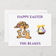 Carte postale de Pâques avec lapin, panier de Pâques et personnalisée avec nom de famille.