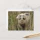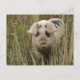 Cette jolie carte postale présente une belle photo d'un mignon cochon rose émergeant d'une grande herbe.