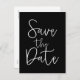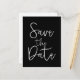 Carte postale de pré-annonce en noir et blanc avec écriture moderne.