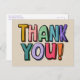 Des couleurs vives de l'arc-en-ciel remplissent ce lettrage en bloc illustré dessiné à la main pour donner à cette carte postale de remerciement un éclat de gaieté pour exprimer vos sentiments de gratitude. Au dos, une adresse de retour et un texte de message personnalisable vous permettent de créer plusieurs lots ou de rendre chacun totalement personnel.