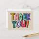 Des couleurs vives de l'arc-en-ciel remplissent ce lettrage en bloc dessiné à la main pour donner à cette carte postale de remerciement une touche de fun pour exprimer vos sentiments de gratitude. Au dos, une adresse de retour et un texte de message personnalisable vous permettent de créer plusieurs lots ou de rendre chacun totalement personnel.