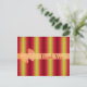Élégante carte postale de remerciement à rayures verticales rouges et jaunes vibrantes avec un aspect texturé. Remplacez votre texte dans le modèle, ou assurez-vous de le supprimer pour ne pas avoir de texte. Cliquez sur Personnaliser pour changer la taille, le style et la couleur de la police et pour ajouter ou supprimer du texte. Cette image est disponible sur de nombreux produits dans ma galerie. Veuillez visiter Smilin' Eyes Treasures pour voir plus de photographies de fleurs et de nature et des cartes et des cadeaux d'art numérique.