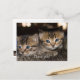Carte postale de remerciement avec deux chatons qui grimpent sur le dos de leur maman pour voir ce que je fais.