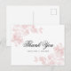Une carte postale de remerciement rose romantique et tendre présentant des botaniques de roses vintage, un "merci" écrit en script et un caractère typographique classique. Les florales douces rendent cette invitation féminine sans être trop. Parfaite pour un mariage d'inspiration vintage, un mariage dans un jardin en plein air ou un mariage classique et intemporel. Fait partie de la collection de mariage Vintage Floral par Stacey Meacham. Trouvez des accessoires assortis et d'autres options de couleurs ici : http://www.zazzle.com/collections/vintage_floral_wedding-119209917940763393