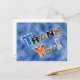 Montrez votre appréciation avec cette carte postale de remerciement bleue unique. Le texte est réalisé avec quelques éléments de la nature. Voir nos articles assortis.