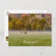 Carte postale de remerciement représentant un couple d'élans paissant dans un champ par une froide matinée d'automne avec un peu de brouillard persistant. Le grand élan mâle mange de l'herbe tandis que la femelle regarde. Cela se trouve dans la vallée de Boxley, Arkansas, États-Unis.