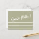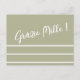 Grazie Mille ! Carte postale de remerciement italienne avec une jolie typographie blanche et des rayures blanches sur un fond de ton assourdi dans la couleur de votre choix parmi de jolies teintes.