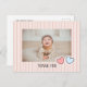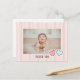 Une simple carte de remerciement d'anniversaire avec un fond rayé et de petits cœurs devant.