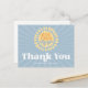 Carte de remerciement 'Voici venir le fils' ensoleillée pour aller avec vos invitations. Un design de baby shower pour garçon avec un style rétro.