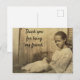 Remerciez les personnes spéciales de votre vie pour être votre ami avec cette carte postale présentant une photo vintage d'une jeune femme et de son ami poulet.