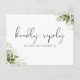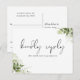 Une carte postale de réponse de demande de chanson élégante avec motifs floraux et typographie chic. Le verso présente vos coordonnées et une demande de chanson d'invité ludique. Conçue par Thisisnotme©