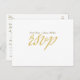 Carte postale de réponse de mariage à l'écriture blanche et or. Articles assortis disponibles.