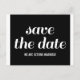 Carte postale de sauvegarde de date en noir et blanc avec un design de typographie fantaisiste. Cette carte postale de sauvegarde de date tendance et moderne est facile à personnaliser avec vos détails de mariage. Pour plus d'options de personnalisation, cliquez sur le bouton Personnaliser.