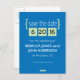 Cette carte postale de sauvegarde de date simple vert menthe et bleu aqua présente un design moderne. Le fond est uni bleu aqua avec trois carrés vert menthe pour la date du mariage. Personnalisez le texte pour répondre à vos besoins.