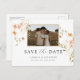 Carte postale de sauvegarde de date florale photo. Cette carte postale d'annonce de sauvegarde de date photo élégante et stylée présente de superbes fleurs sauvages aquarelles peintes à la main disposées dans un bouquet charmant parfait. Trouvez des articles assortis dans la collection de mariage Boho Wildflower.
