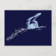 Carte postale avec illustration de snowboard avec silhouette,trainée de mouvement et neige