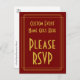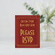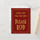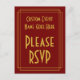 Cette conception générique de carte de réponse de style inspiré des années 1920 comporte le message "Merci de répondre" sur le devant, ainsi que le nom personnalisé de l'événement. Elle comporte également un formulaire de réponse personnalisé au dos, ainsi qu'une adresse personnalisée à laquelle les cartes de réponse remplies seraient envoyées. Des cartes de réponse comme celle-ci pourraient être utilisées pour savoir qui participera à une douche de mariage, une fête de Noël, un dîner, ou un autre événement.