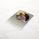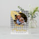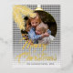 Carte de voeux de Noël classique contemporaine avec aiguilles de pin blanc en fer feuille en motif sur un écossais blanc et gris en vichy écossais motif tartan plaid arrière - plan, avec véritable feuille d'or Joyeux texte de voeux de Noël. Avec l'option et la place pour customiser le texte, le nom de famille et la date de l'année, et ajouter une photo personnelle de votre choix sur le devant, et un message de salutation de saison personnalisable sur le côté arrière de la carte.