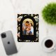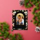 Ce doux accueil de Noël présente un motif de vacances douillet avec des maisons d'hiver illustrées, décorées dans un magnifique décor de Noël sur un arrière - plan noir. Le lierre d'aquarelle et les éléments de pin rustique ajoutent à la fête, et le dos comprend un message de vacances personnel avec maison illustrée et adresse de retour.