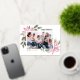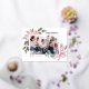 Joyeux Noël! Envoyez des voeux de vacances à votre famille et à vos amis avec cette carte postale de Noël personnalisable en feuille d'or. Il présente l'aquarelle illustration de poinsettias roses, baies, coton et hollies. Personnalisez en ajoutant des photos et vos propres textes. Cette carte postale de Noël à fleurs roses est disponible dans une variété de cartons.