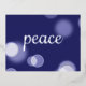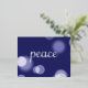 Cette carte élégante à l'allure intemporelle est une carte de vacances parfaite pour votre entreprise. Un simple message de paix en feuille d'argent typographie contre un arrière - plan d'un bleu profond avec des billes ou des lumières de bokeh argentées et blanches. Customisez votre message, votre salutation et le nom de la société au verso de la carte postale. Un sentiment agréable pour la saison des Fêtes.