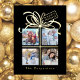 Ajoutez vos photos d'hiver à ce présent enveloppé dans un véritable ruban métallique doré avec un arrière - plan noir. Customisez avec votre nom de famille et montrez au monde des vacances en famille.
