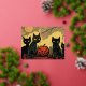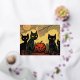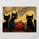 Carte Postale De Vacances En Aluminium Chats noirs d'Halloween avec une carte de citrouil