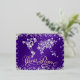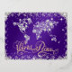 La carte du monde en diamants et typographie de FOIL magnifique 'Paix Mondiale' Message de vacances - fond en Violet Royal et flocons de neige étincelants élégants qui entourent ce fond surligné de violet avec un texte de script fantaisiste - Personnalisé avec votre message au dos et NOTE de signature : AUCUN diamant/pierre précieuse réel n'est sur cette carte - ils sont créés artistiquement pour paraître réels
