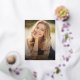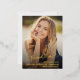 Célébrez l'exploit de votre diplômé avec cette carte postale Faire-part photo moderne Script Overlay avec leur photo personnalisée et leur véritable typographie de feuille d'or. Personnalisez avec leur nom, année de diplôme, diplôme, école et plans futurs pour un gardien audacieux mais intemporel. Une façon élégante de partager un jalon avec votre famille et vos amis. Le vrai doré détaille les niveaux comme une carte postale gardée et digne d'un cadre. L'adresse de retour est également personnalisable, une chose de moins pour le étiquette.