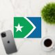 Carte postale avec un design avec le drapeau de Cedar Rapids, Iowa. Un drapeau vert et bleu avec une étoile blanche