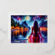 Carte Postale De Vacances En Aluminium Dreamsea beach fille avec lune et lumières